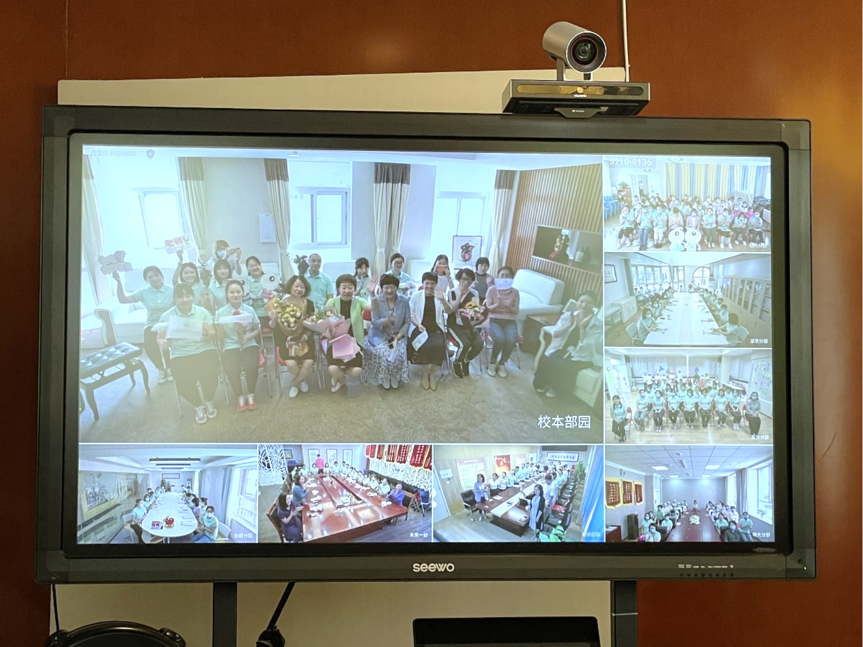 最后,总部、各园区的教师代表们通过视频会议系统互相送出诚挚的教师节祝福。