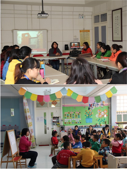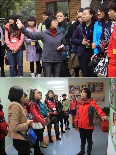 2013年11月8日和11日,正规滚球app官方网站承接了来自湖南省75位园长的“国培”项目活动。培训形式有专题讲座、半日观摩、困惑答疑、反思研讨。全方位的向前来学习的湖南园长们展现了正规滚球app官方网站“以儿童为本”的教育理念和实践活动,为每位学习者留下了深刻的印象。