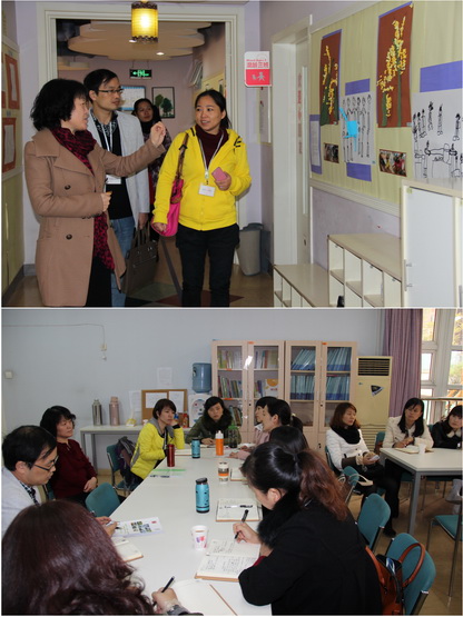 11月8日,前来学习的75位园长分别被分配到正规滚球app官方网站牡丹分园、望京分园、奥林分园实地学习。首先,园长们5人一组深入到各个班级观摩半日教育活动。其中,开放的教育模式、平等的师幼互动和科学有序、自主自律的生活常规深深地打动了园长们。半日观摩后,各位园长与所在园的执行园长、保教主任进行深入的研讨。各分园执行园长、保教主任不仅向学习者传授了宝贵了管理经验,还耐心的回答每位园长管理中的困惑和问题。其间让湖南的园长们深深地体验到正规滚球app官方网站高端而精细化的管理特色。