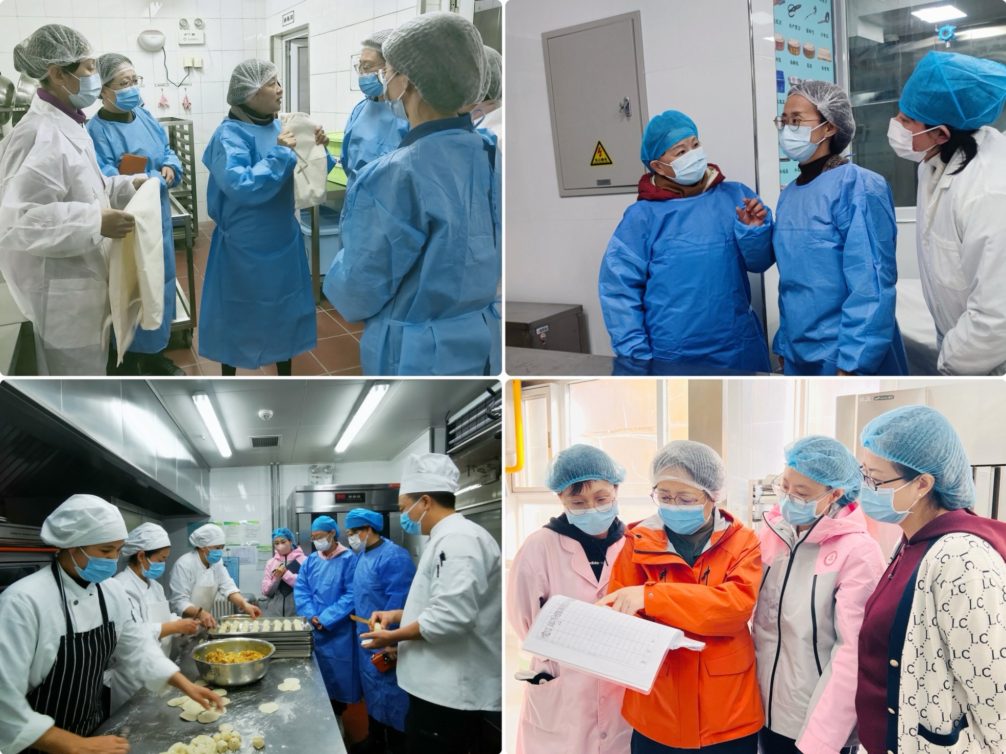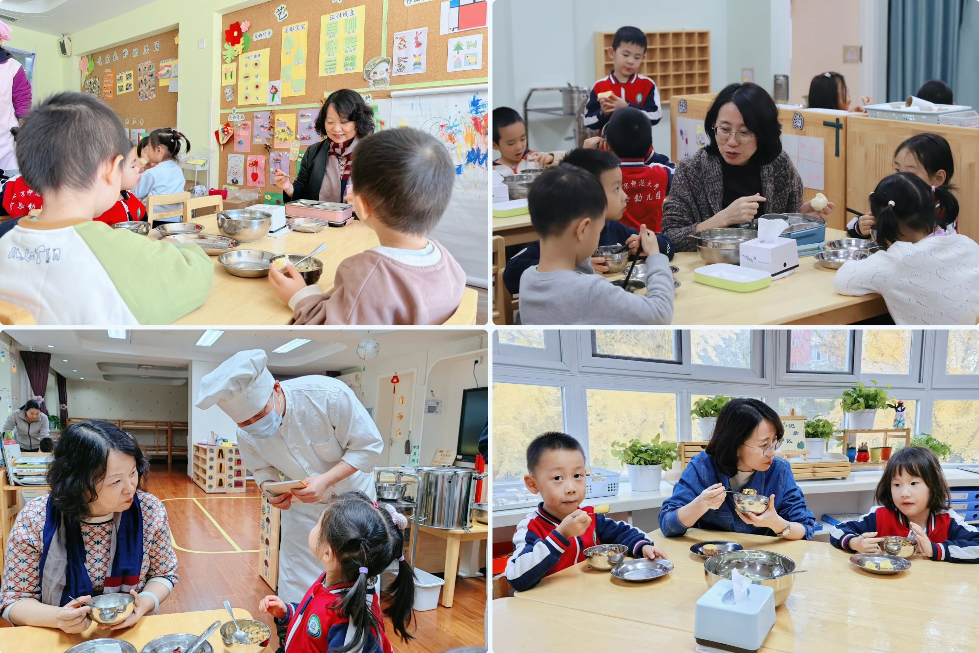 检查小组先后对厨房、食品库房进行实地查看,对食堂安全制度建设及日常工作文档进行查阅,随后围绕供货商配送情况、厨房员工业务水平培训需求以及食谱修改方案等方面与各园执行园长、食品安全管理相关人员进行调研,最后园领导走进班级,与孩子们并肩同坐,用心陪餐,了解幼儿对饭菜的喜好,对饭菜的色泽、口味等进行评价并做好陪餐记录。