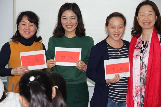 总园长黄珊与望京分园执行园长徐翠凤为参加学历进修的老师颁发奖学金