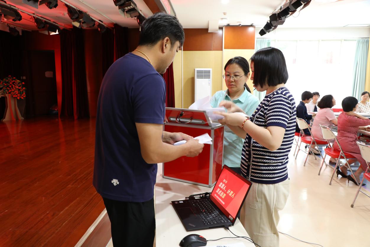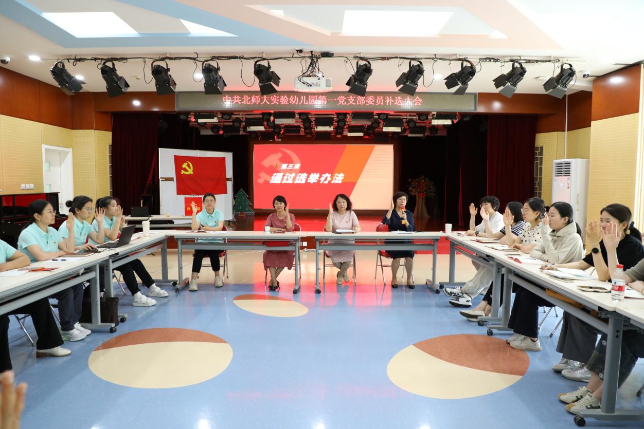 因工作需要,经滚球app党委批准,2024年5月31日,实验幼儿园第一党支部在校本部多功能厅召开党员大会进行支部委员补选。大会由现任组织委员鞠亮主持,35位有选举权的正式党员参加,1位预备党员及7位流动党员列席大会。