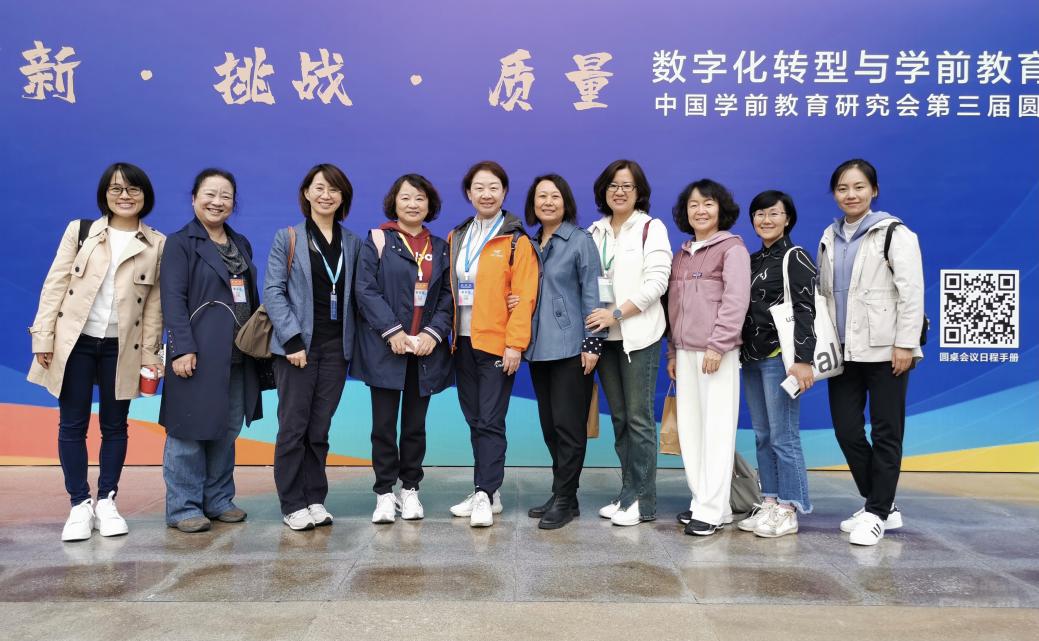 2023年10月11日至13日,中国学前教育研究会第三届圆桌会议在陕西省西安市举行。大会汇集了全国范围从事信息技术、教育基本理论、学前教育发展等领域的理论与实践专家,共同探索数字化时代推进我国学前教育高质量发展的理念、策略和举措等。今年大会主题为:“创新·挑战·质量--数字化转型与学前教育未来”,共包括13位专家圆桌论坛、6个平行分论坛及幼儿园现场观摩等。总园长黄珊携执行园长杜军、夏华颖、徐翠凤、高以华、吴媛媛、杨海燕、邱守,珠海实幼副园长郭美娟及总部信息教研员何字娟一行10人参加会议。
