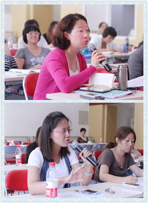 张丽娟老师对教育成果汇报进行点评,教师们对汇报内容进行讨论