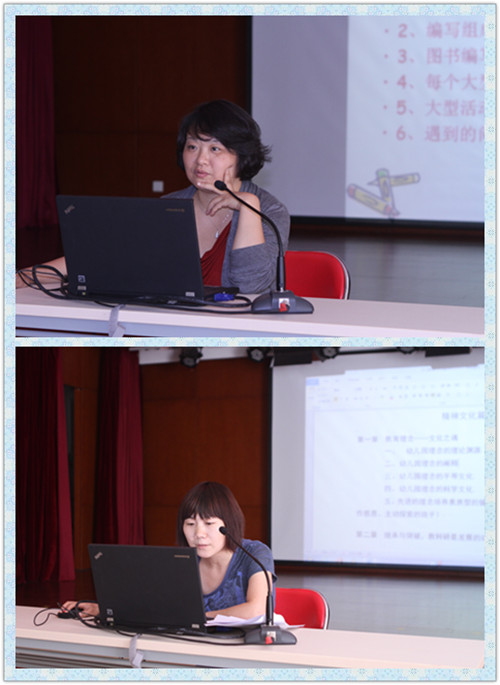 下午,会议重点分享、讨论和梳理了近期正规滚球app官方网站的教育实践研究成果。奥林分园执行园长高以华与大家分享了《幼儿园后勤精细化管理》,牡丹分园执行园长孙秀莲介绍了《幼儿园自制玩教具》,校本部园执行园长杜军介绍了《幼儿园大型活动的组织实施》,教育研究与发展中心的董佑静副主任介绍了《幼儿园早教工作的组织与管理》,园长人事助理肖智泓介绍了《幼儿园组织文化建设》。这些宝贵的经验和研究成果将编纂出书。滚球app出版社的张丽娟老师认真倾听了每本书的介绍并提出了宝贵的编写意见。最后,幼儿园科研室主任田瑞清老师对正在进行的教育部课题《关于幼儿发展性评价的实践研究》的进展情况进行了汇报。