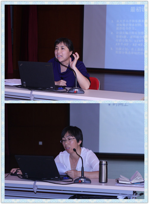 教育发展中心副主任董佑静和教科研主任田瑞清汇报教学研究成果