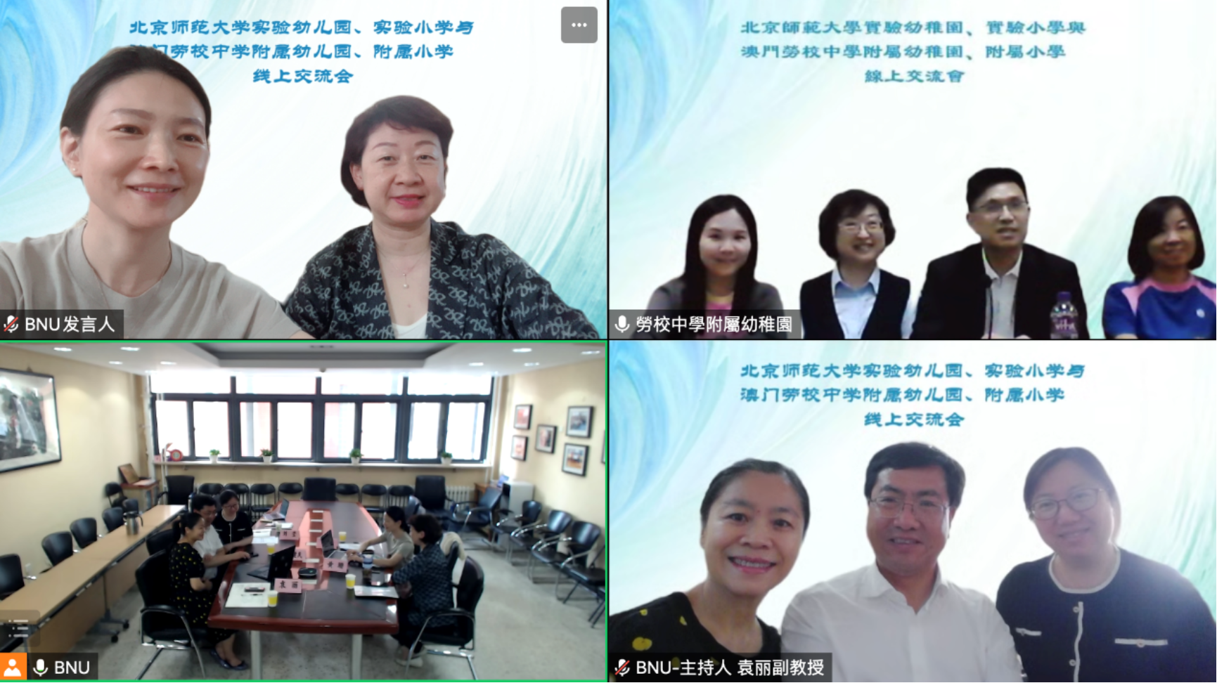 2023年5月16日,正规滚球app官方网站、实验小学与澳门劳校中学附属幼儿园、附属小学第一次线上会议成功举办。